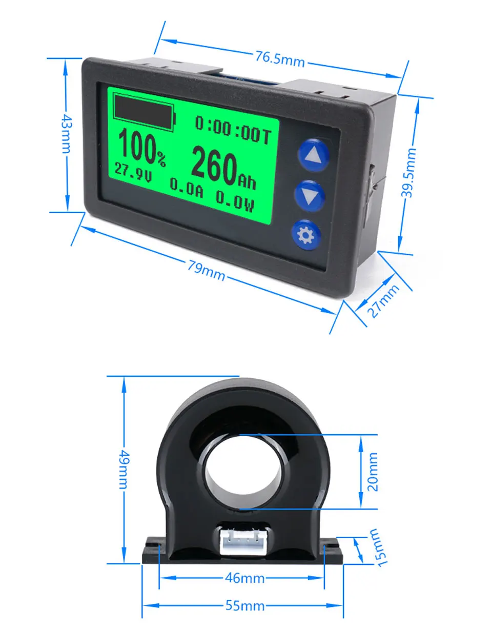 12V 24V 36V 48V Battery Monitor Hall Coulomb Meter DC8-100V 100A 200A 300A 400A Lifepo4 Lead-acid Li-ion Lithium Capacity Power