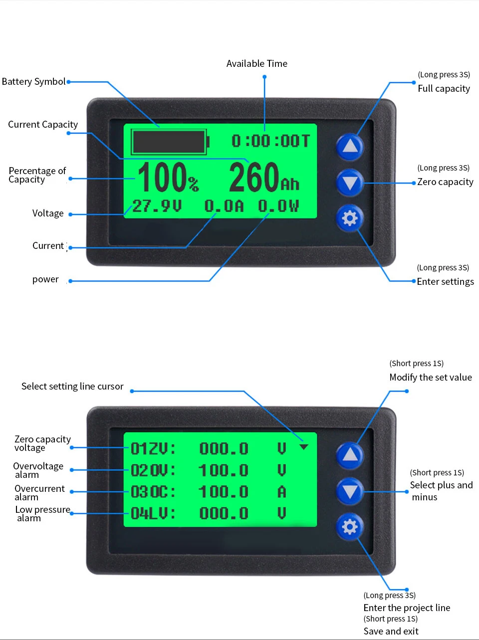 Capacity range: 0~99999Ah