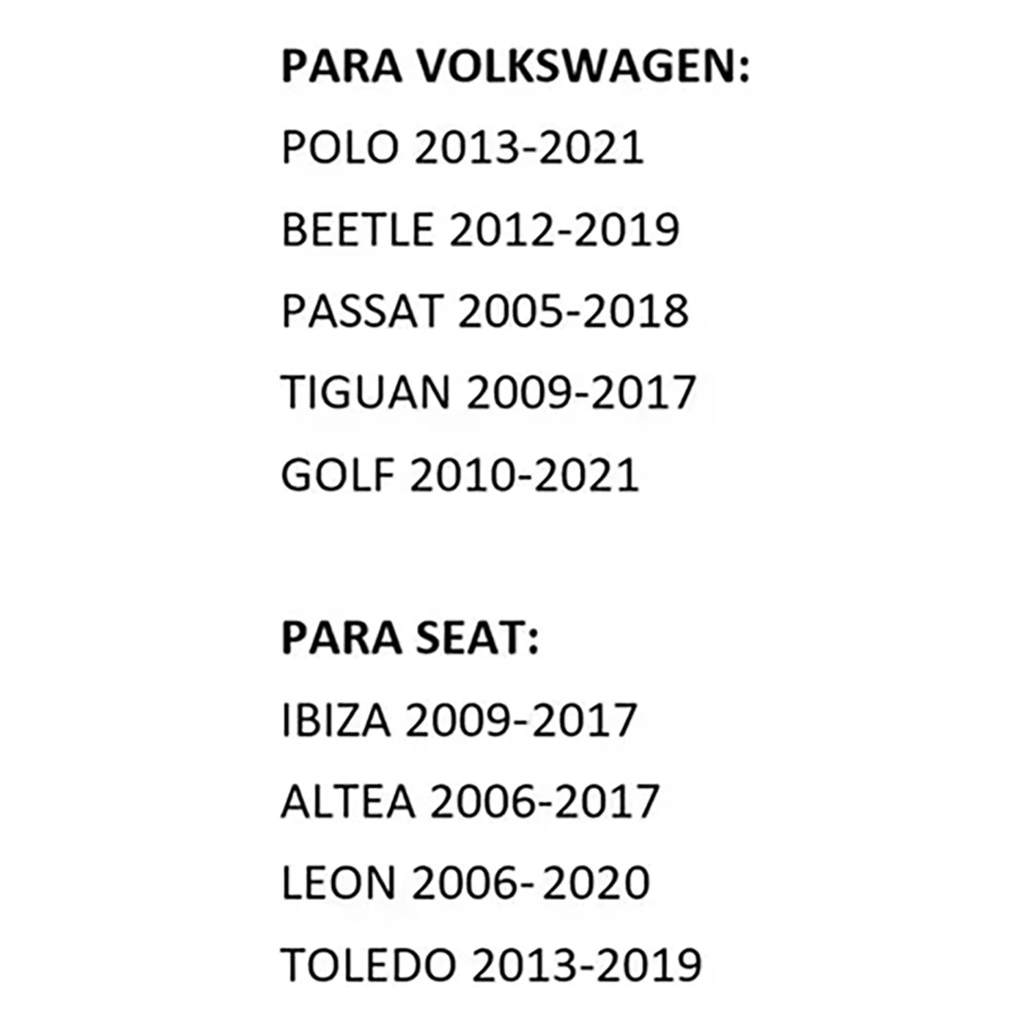 - Volkswagen Beetle 2012-2019- Volkswagen Passat 2005-2018