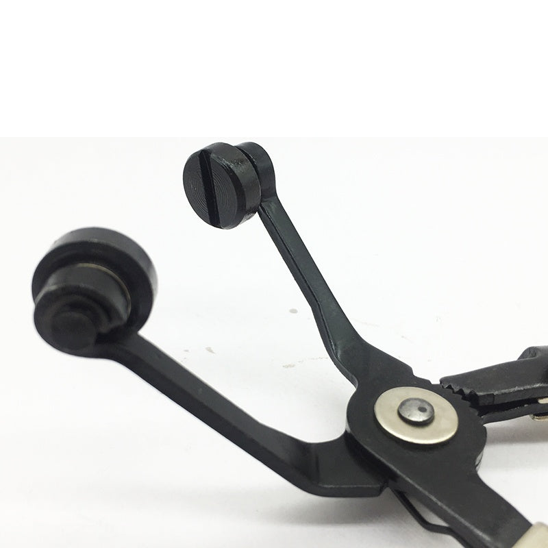 Features:Used to compress spring type hose clamps in tight areas Jaws are bent at a 45 degree angle and a straight nose pliers tips swivel to allow easy access to confined areas A ratchet lock mechanism holds jaws open