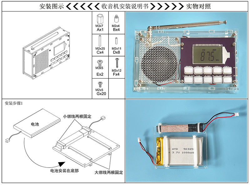 <1>: This product is the radio kit shown in the main picture. You need to assemble it yourself when you buy it back. You only need to prepare a screwdriver to complete the assembly without soldering electronic components.