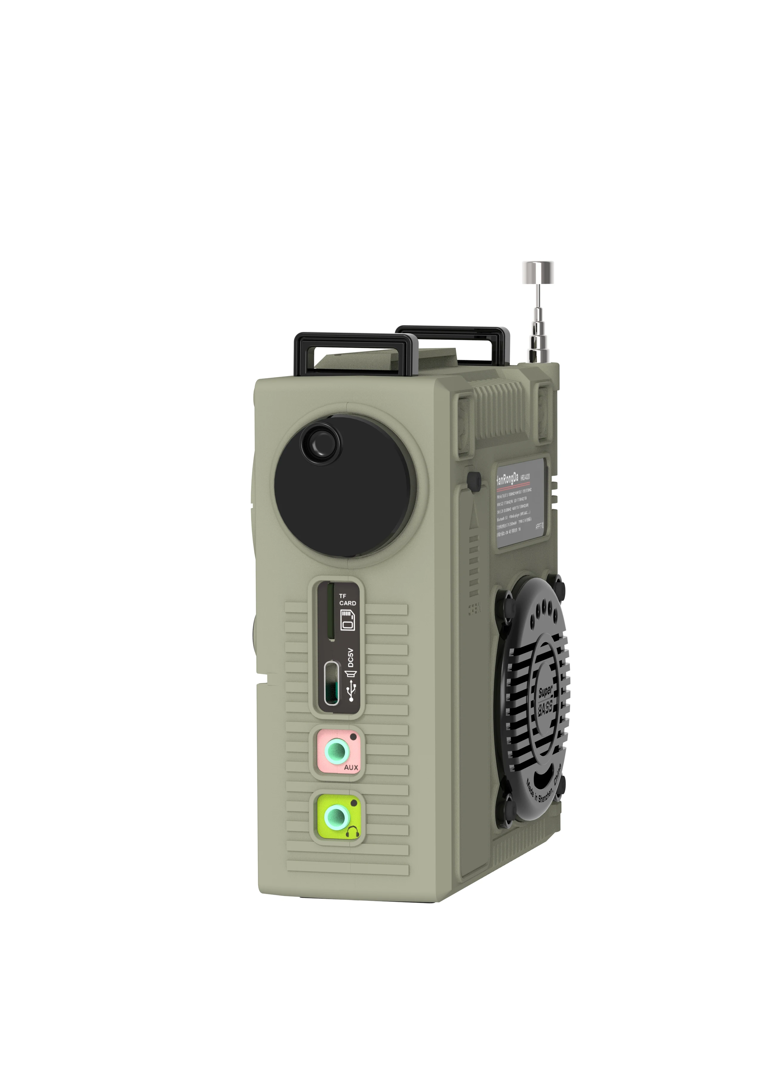 Support AIR aviation band, FM FM, MW medium wave, SW short wave, VHF VHF, WB weather band multi-band radio reception in North America, also support Bluetooth, TF card playback, audio input as speaker playback (support 3.5MM audio line-in input/use data cable to connect to computer AUX-in input), support connection to computer as card reader use Support internal recording radio, 5W high-power power amplifier, bass sound quality. It supports flashlight lighting and SOS alarm emergency functions. It is also an emergency product that can be prepared at home and carried when playing outdoors.
