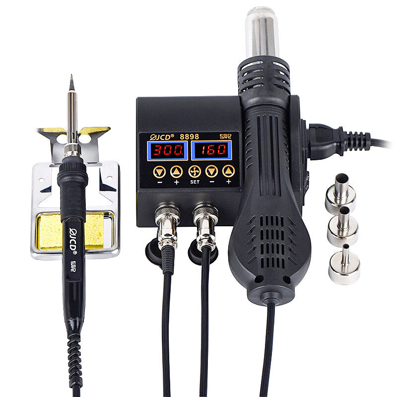 JCD 8898 2 In 1 750W Soldering Station Hot Air Gun Heater LCD Digital Display Soldering Iron Welding Rework Station for Cell-phone BGA SMD PCB IC Repair