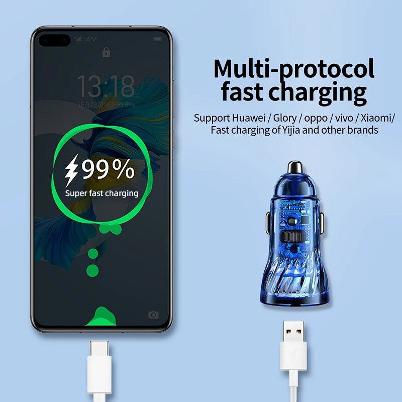TUERBB CC01 Car Charger Fast Charging PD 30W QC4.0 USB with Blue LED Breathing Lights for iPhone 14 13 Pro Max