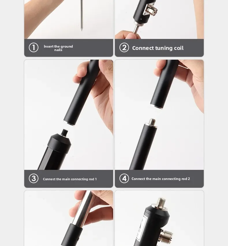- Instale dos "varillas de conexión principales" encima de la "bobina de afinación".La varilla de extensión puede extender la longitud de la "antena de varilla".